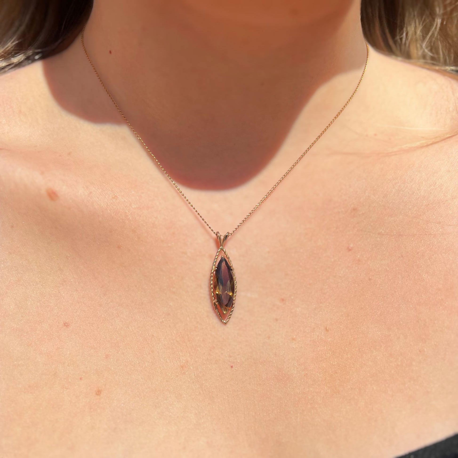 Vintage 9ct Yellow Gold Smoky Topaz Navette Shaped Necklace