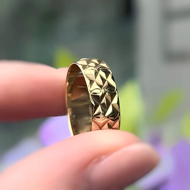 Vintage 9ct Yellow Gold Star Patterned Band - Size M ½