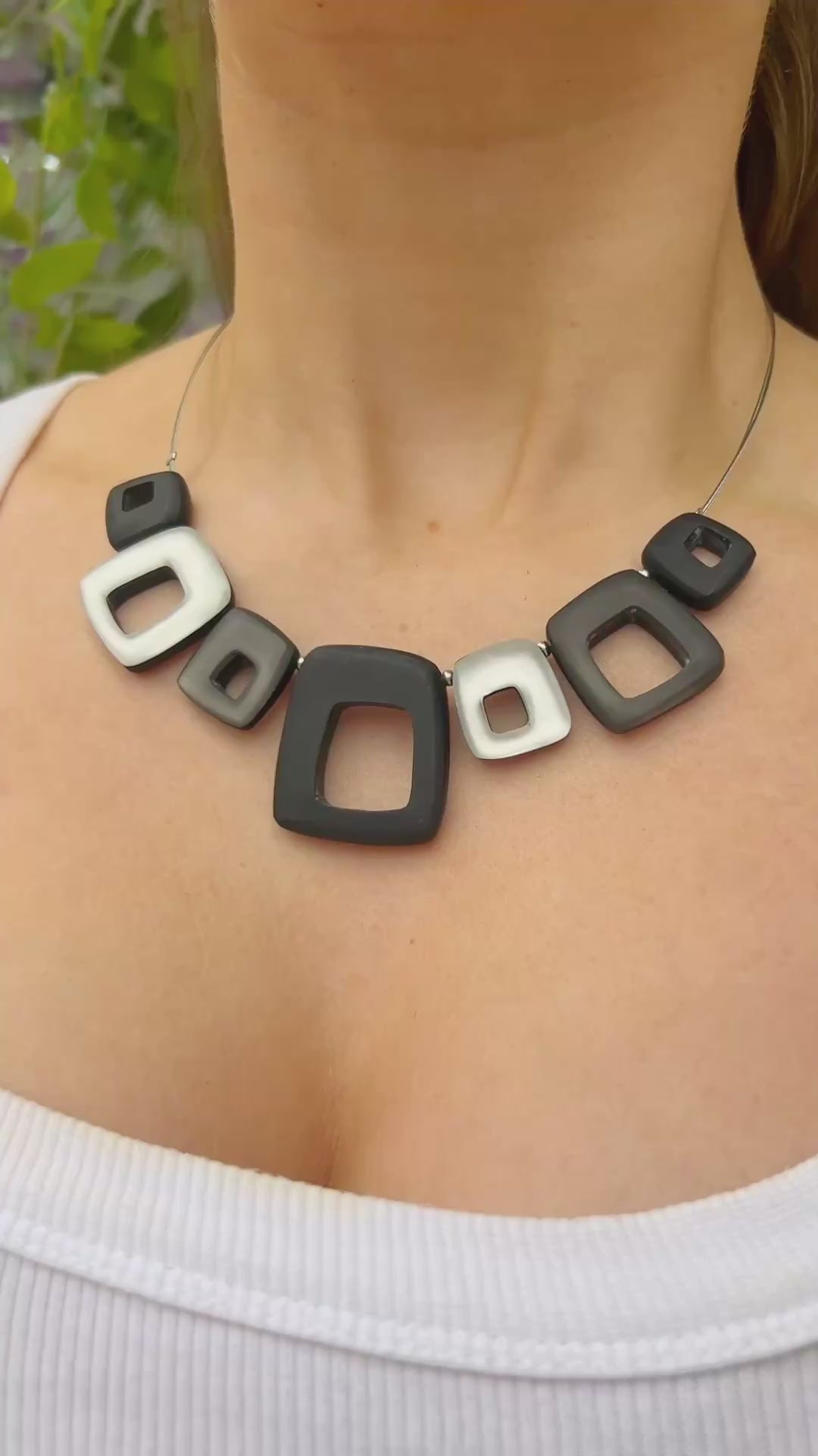 ‘Watch This Space’ Black, White & Grey Square Necklace