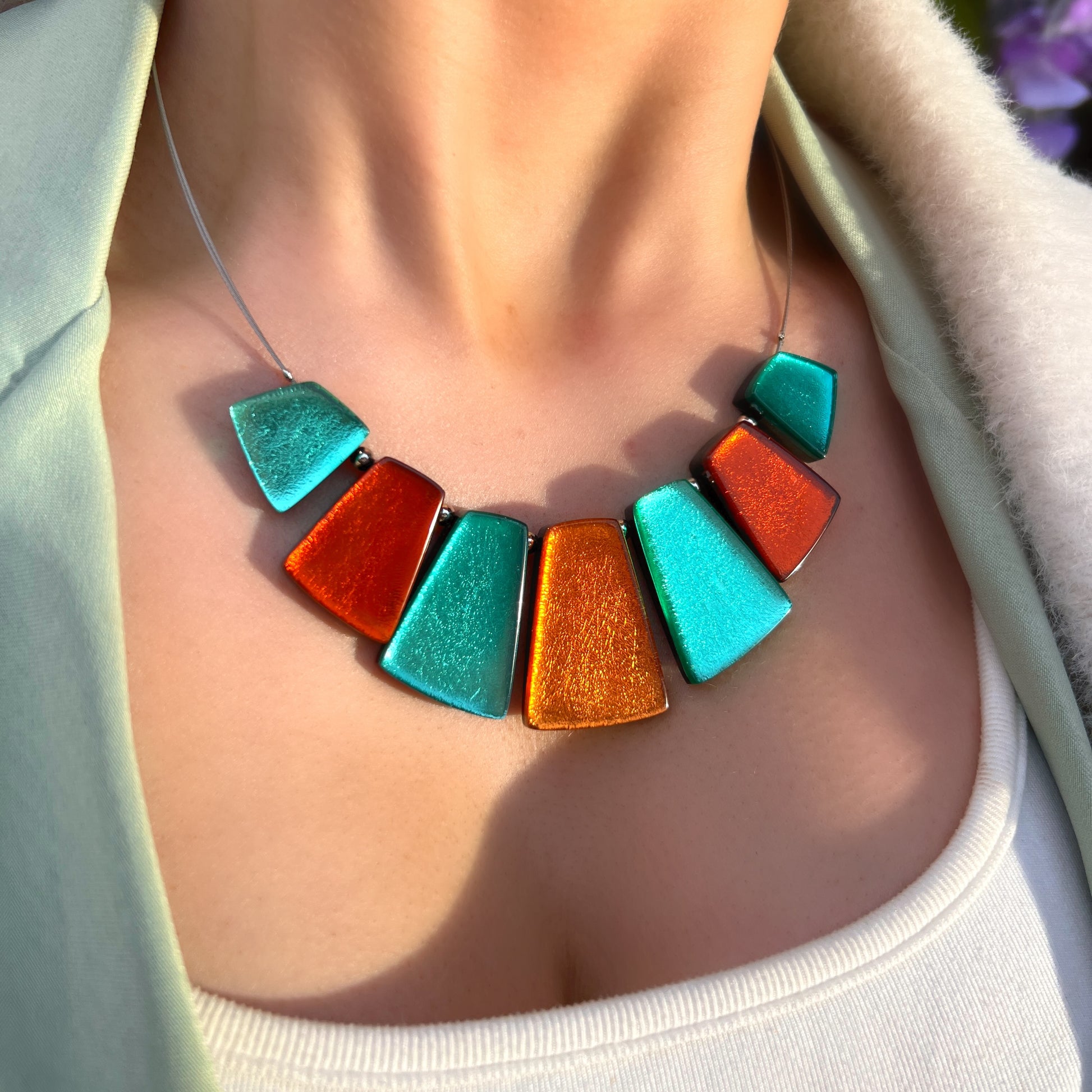 ‘Watch This Space’ Turquoise Blue and Orange Statement Necklace