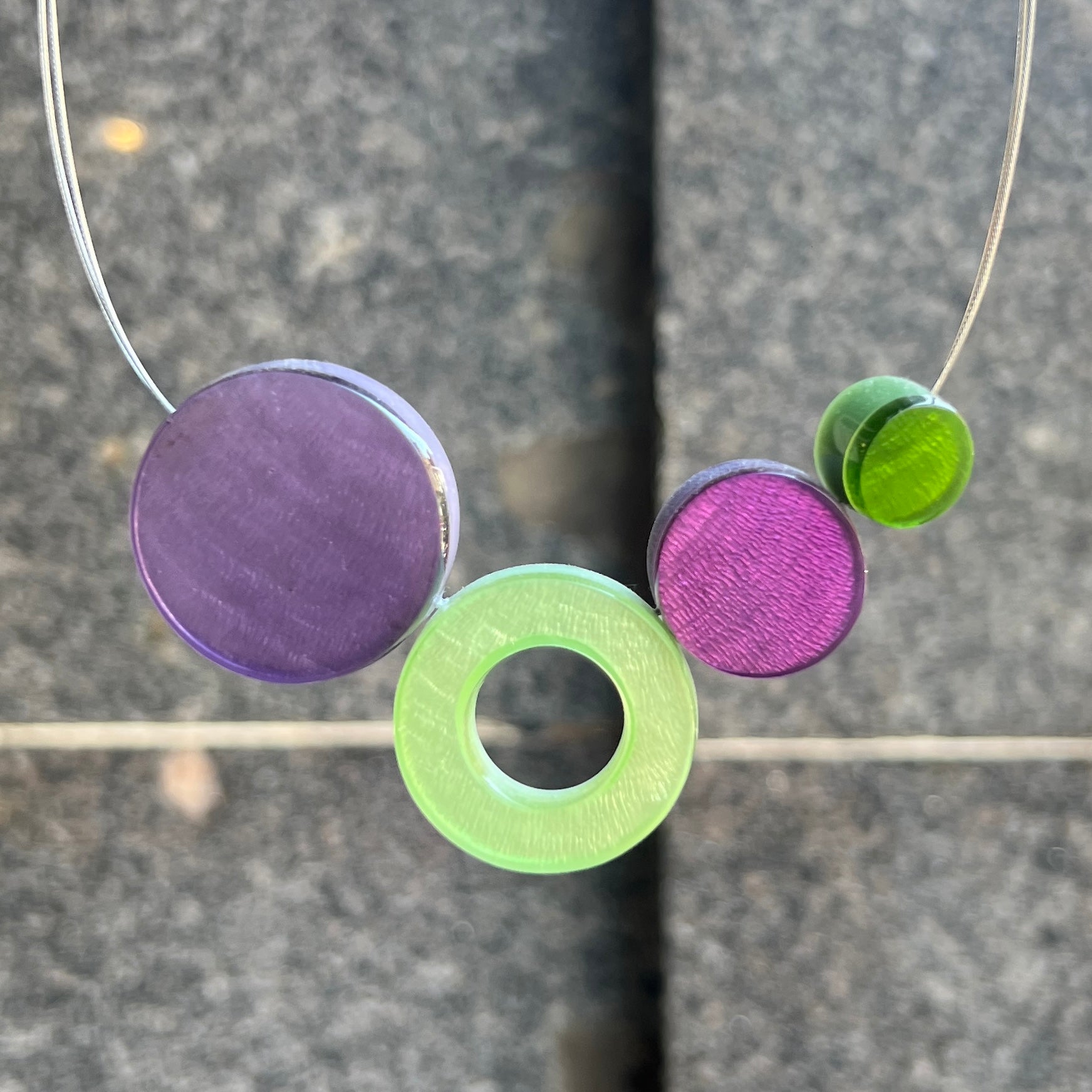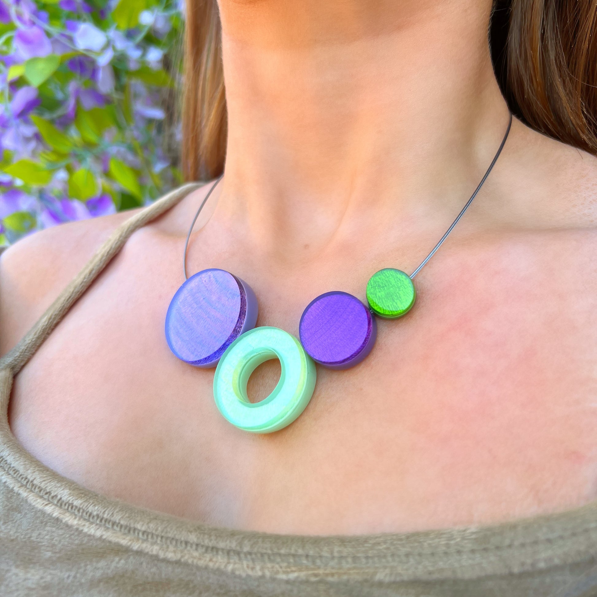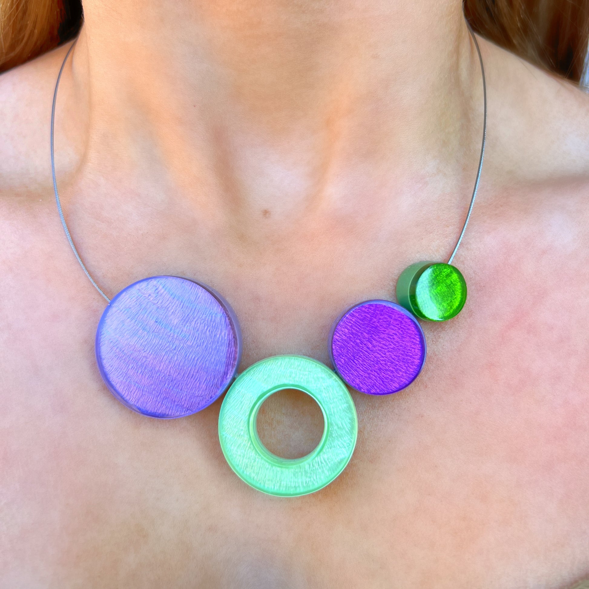 ‘Watch This Space’ Mint Green & Purple Circle Necklace