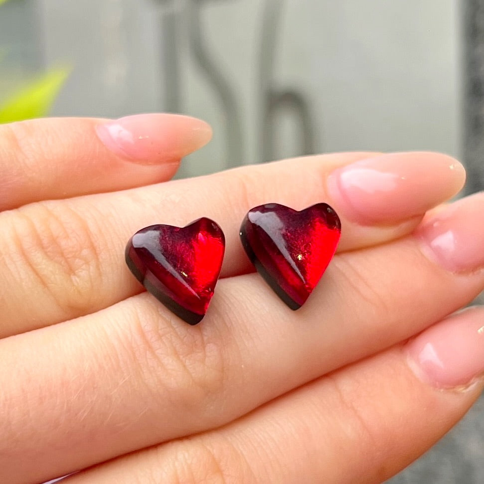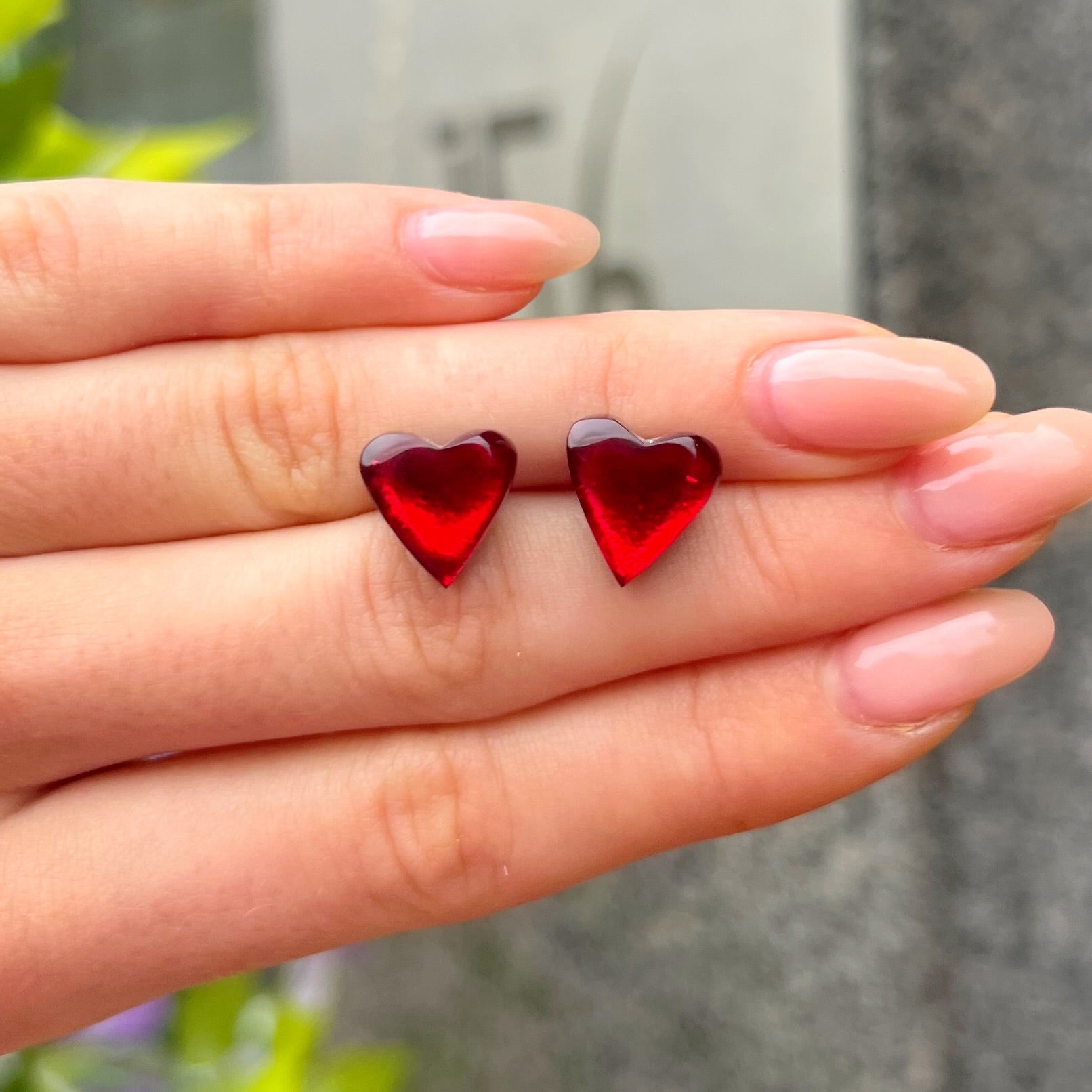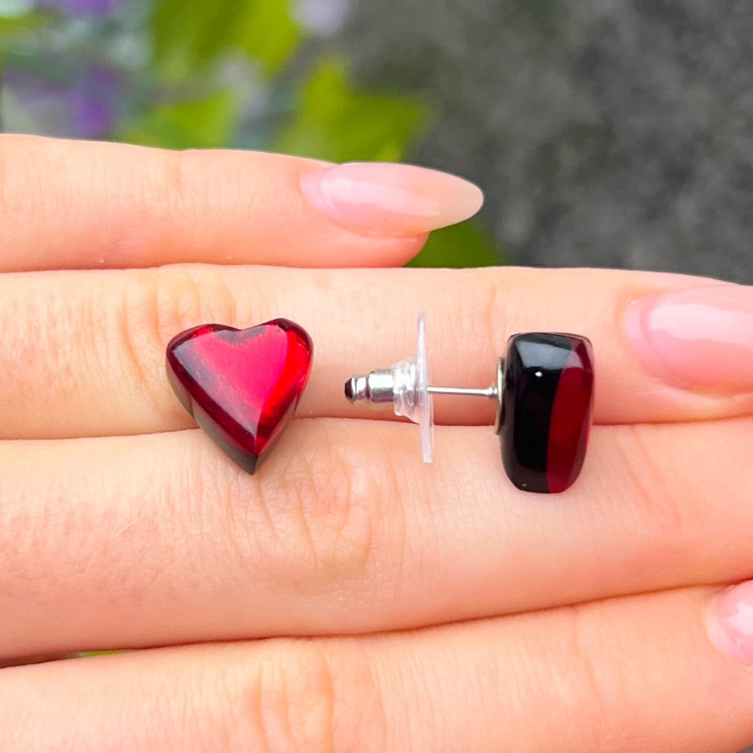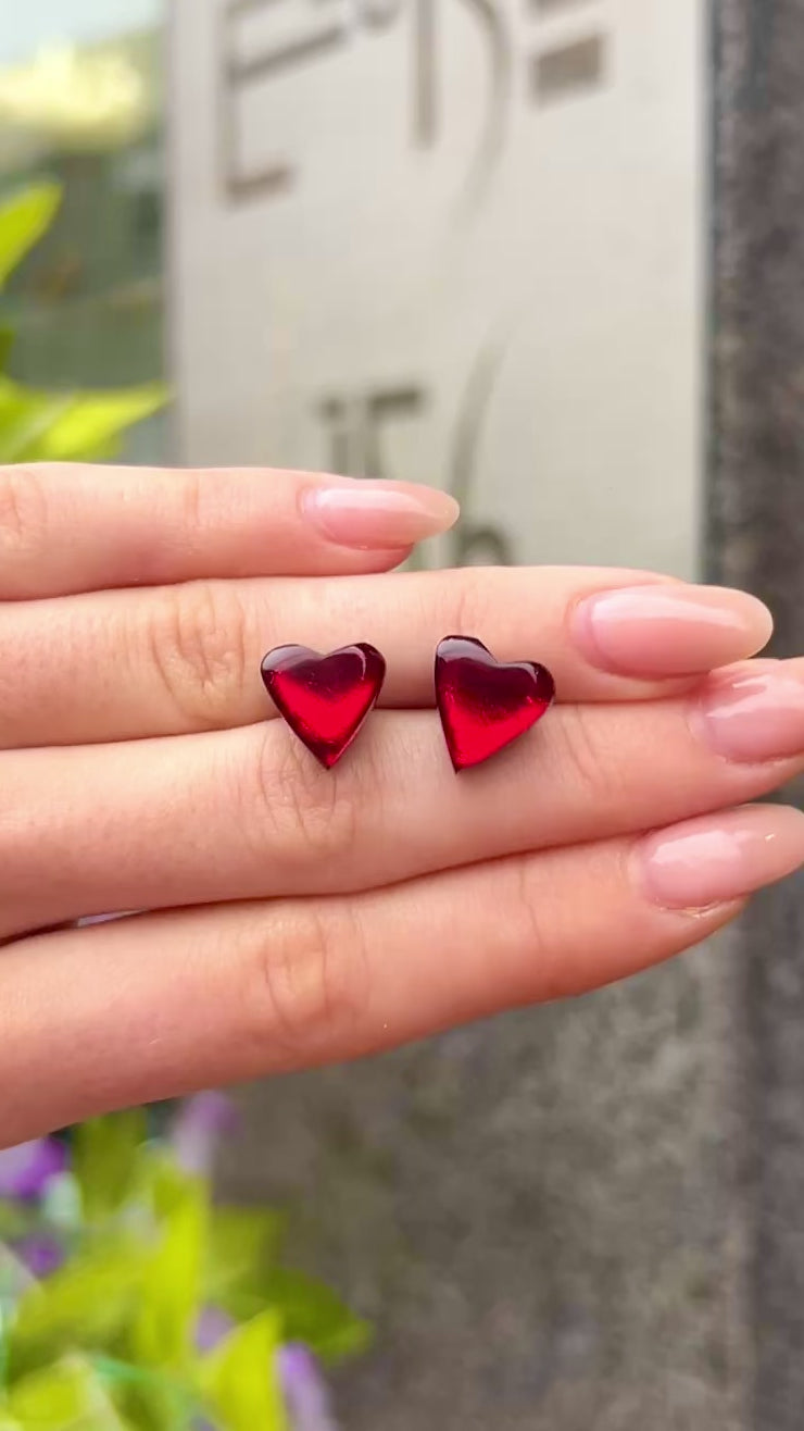‘Watch This Space’ Red Love Heart Stud Earrings