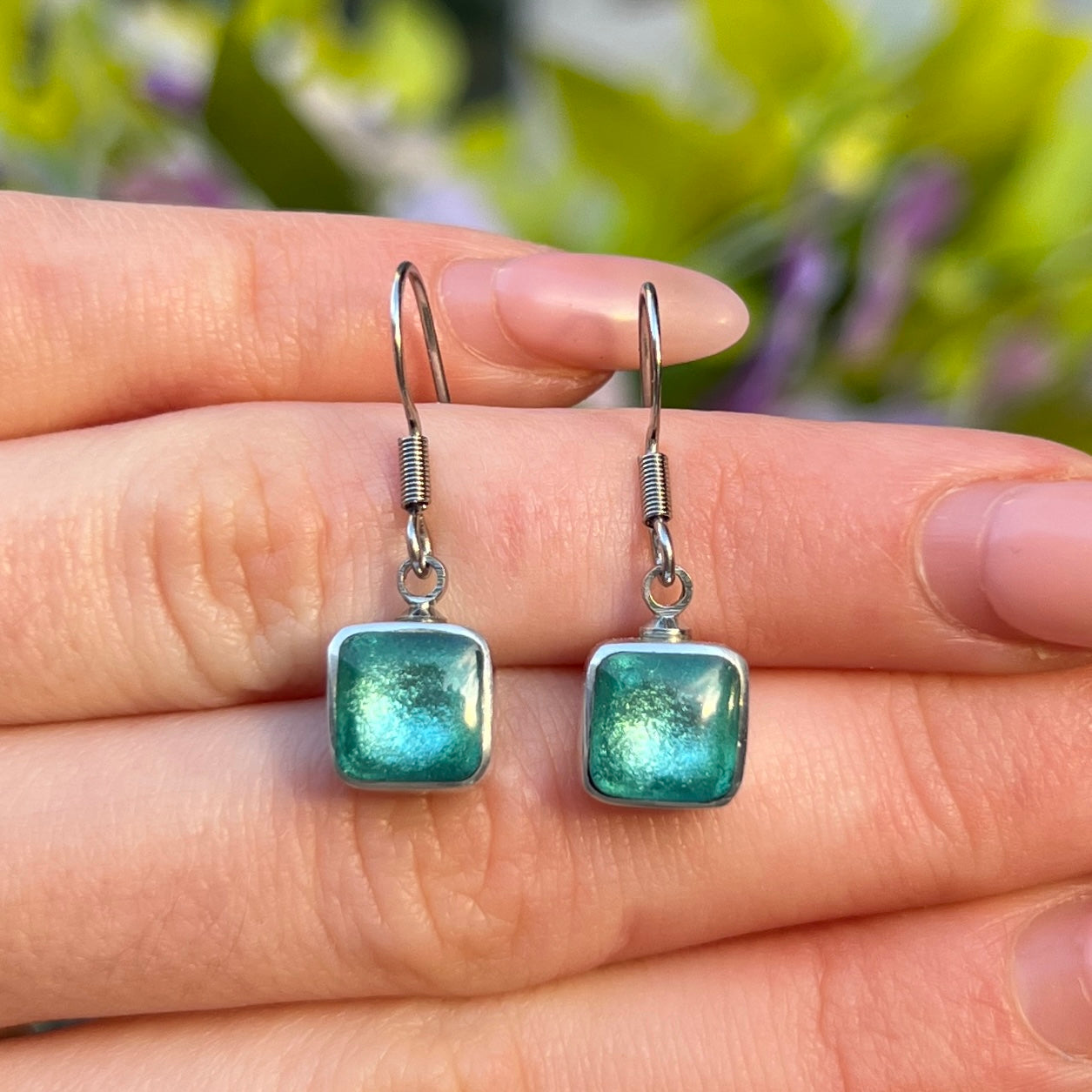‘Watch This Space’ Turquoise Blue Square Drop Earrings