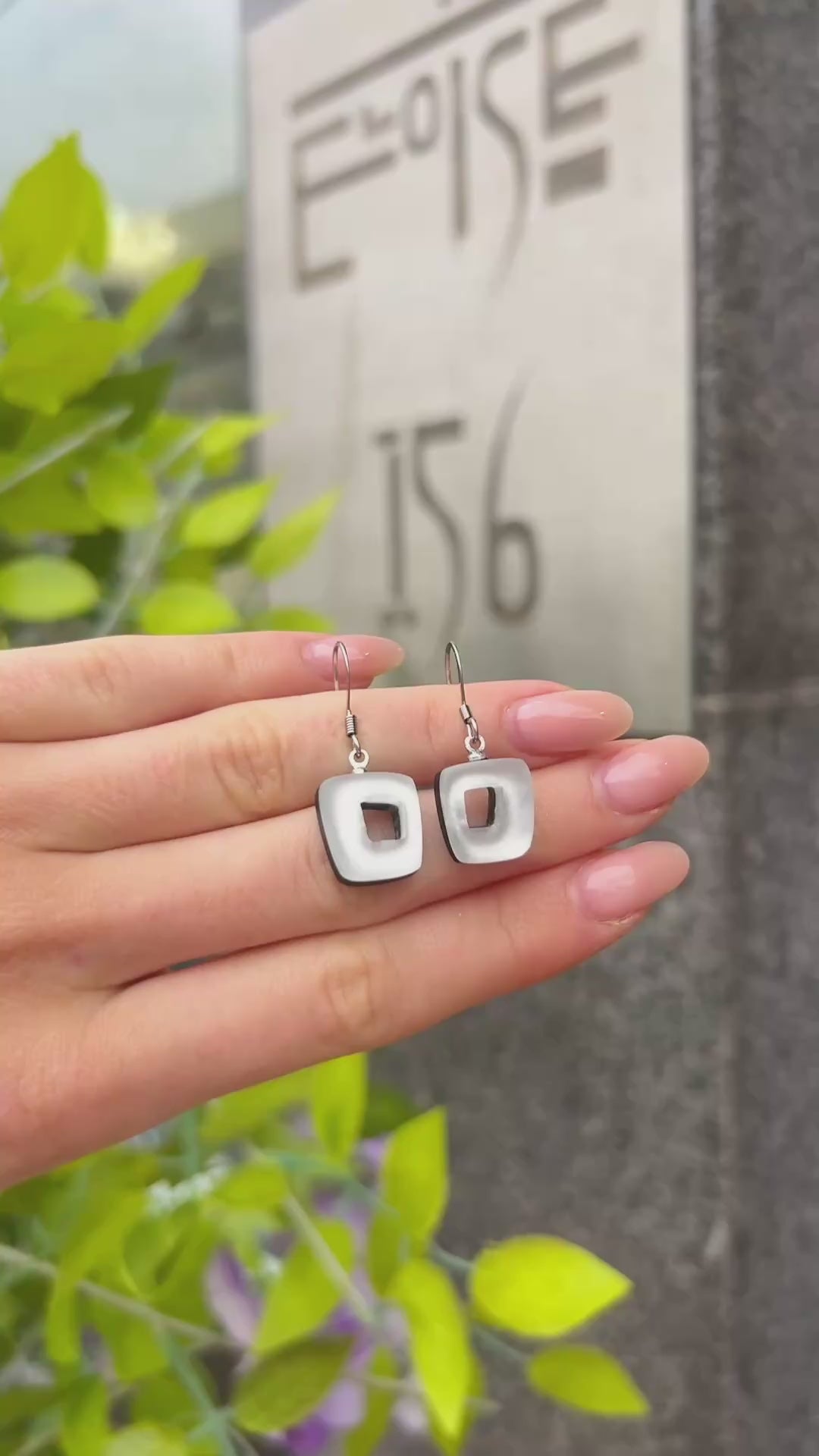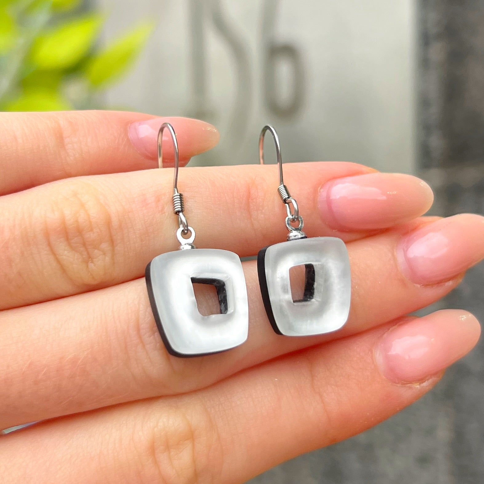 ‘Watch This Space’ White Square Drop Earrings